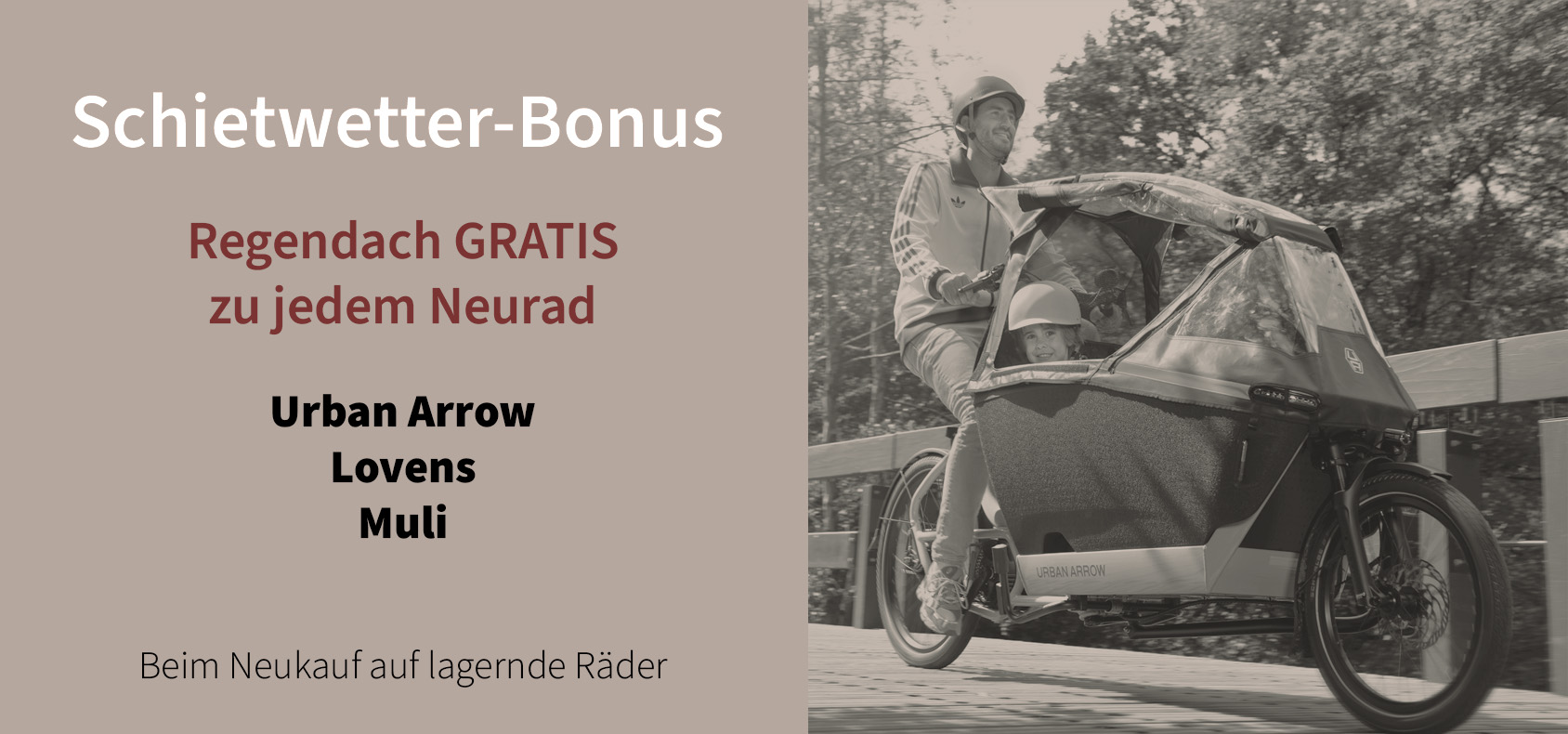 FamilyNext Es ist neuartig, stilistisch einwandfrei – und so viel mehr als nur ein Hingucker.Wir haben unserem ikonischen Design einen frischen, modernen Look verpasst. Nun ist es besser denn je. Entdecke den Neuzugang der Urban Arrow-Familie: das FamilyNext. Die nächste Ikone ist unterwegs Zum allerersten Mal in der Geschichte von Urban Arrow haben wir das Aussehen unseres ikonischen Urban Arrow Family erneuert. Damit ist die nächste Ikone auf den Straßen unterwegs, die bei allen Passanten durch ihr schnittiges Design, die innovativen Sicherheitsvorrichtungen und den ultimativen Komfort Aufsehen erregt. Bist du bereit für das Podium der Straße? Mach jetzt Bekanntschaft mit dem Urban Arrow FamilyNext! The Art of Biking Fun Seit der Gründung im Jahr 2011 ist Urban Arrow Vorreiter bei der Herstellung von elektrischen Lastenfahrrädern im Premium-Segment. Jedes einzelne Fahrrad, das wir gebaut haben, soll dein Leben ein Stück weit verbessern. Und seit jenem Tag ist der Transport deiner Familie mehr geworden als nur eine Fahrt von A nach B – es geht vielmehr um die gemeinsame Reise, die es zu genießen gilt. Wir präsentieren nun das Nachfolgemodell des Lastenfahrrads mit Kultstatus. Ein elektrisches Lastenfahrrad aus dem Premium-Segment, das neben dem neuen Look auch neue Maßstäbe setzt. Es bietet Next-Level-Qualität. Damit kannst du deine Familienabenteuer noch mehr genießen. Wir freuen uns sehr, dir unser neuestes Urban Arrow-Familienmitglied vorzustellen. Du bekommst die beste Funktionalität und den höchsten Sitzkomfort im Mix geboten (Hallo, gefederte Vordergabel!). Hinzu kommt eine gehörige Dosis moderner Technologie. Deine Fahrt wird besser denn je Das Urban Arrow FamilyNext ist mit allen Eigenschaften ausgestattet, die du von uns erwarten darfst. Gemäß den höchsten Standards gebaut, mit geräumiger und sicherer EPP-Box, und nur mit den besten Komponenten unserer bewährten Premium-Partner aus der Fahrradindustrie. Der nach wie vor nach unten verlagerte Schwerpunkt sorgt für eine stabile Straßenlage und dafür, dass du dich auf dem Rad wohl fühlst.So wird der Familientransport neu definiert. Stilvoll, geräumig und unglaublich wendig. Erfahre jetzt mehr über das Urban Arrow FamilyNext. Neu! Jetzt mit gefederter Vordergabel Dank der integrierten gefederten Vordergabel fühlt sich jede Fahrt butterweich an. Die Transportbox bietet jetzt noch mehr Platz. In die Box passt einfach alles. Und der neu konzipierte Einstieg erleichtert das Ein- und Aussteigen. Zur Absicherung deiner kostbaren Zuladung gibt es ein optimiertes Verschlusssystem. Du kannst also wirklich ruhigen Gewissens alles einpacken und alle mitnehmen. Features ePowered by Bosch Mit dem neuen Bosch Smart System jetzt noch mehr Leistung und Konnektivität. Wähle zwischen den Motorvarianten:- Advanced mit dem Performance Motor und 75 nm- Pro mit dem Cargo Line Motor und 85 nmAusserdem gibt es drei Akkugrößen: 400 Wh, 545 Wh oder 800 Wh Enviolo stufenlose Naben-Schaltung Die Heavy Duty-Schaltung sorgt für mühelose Schaltübergänge und ist ein ganz ausgezeichneter Partner des Bosch-Motors. Wähle zwischen dem manuellen Drehgriff oder der elektronisch-automatischen Ausführung. Optimieren? Zubehör anschaffen! Optimieren Sie Ihr Urban Arrow mit cleverem Zubehör, z.B. dem Regendach.*Die optionalen Design-LED-Leuchten an der Vorderseite der Box bauen wir Ihnen gerne ein.