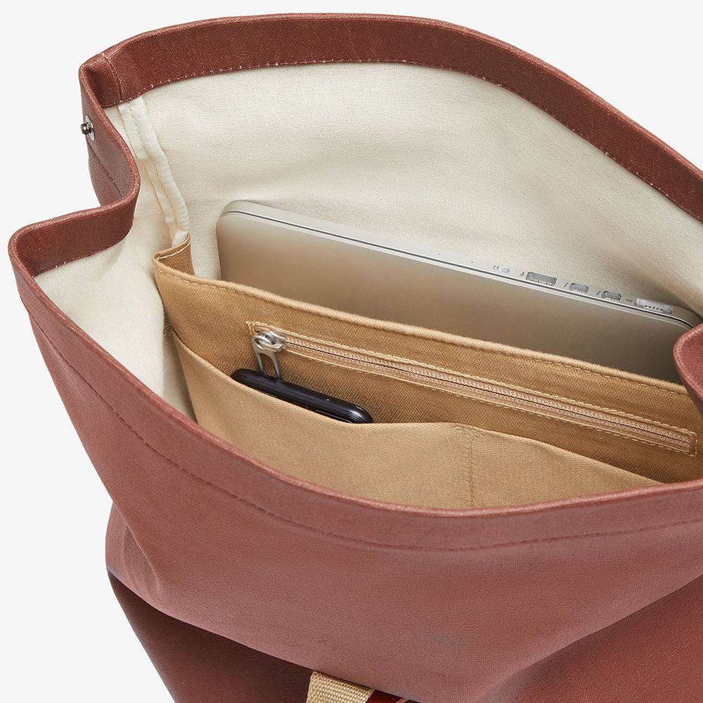 Ein stilvoller, handgefertigter Rolltop-Rucksack.