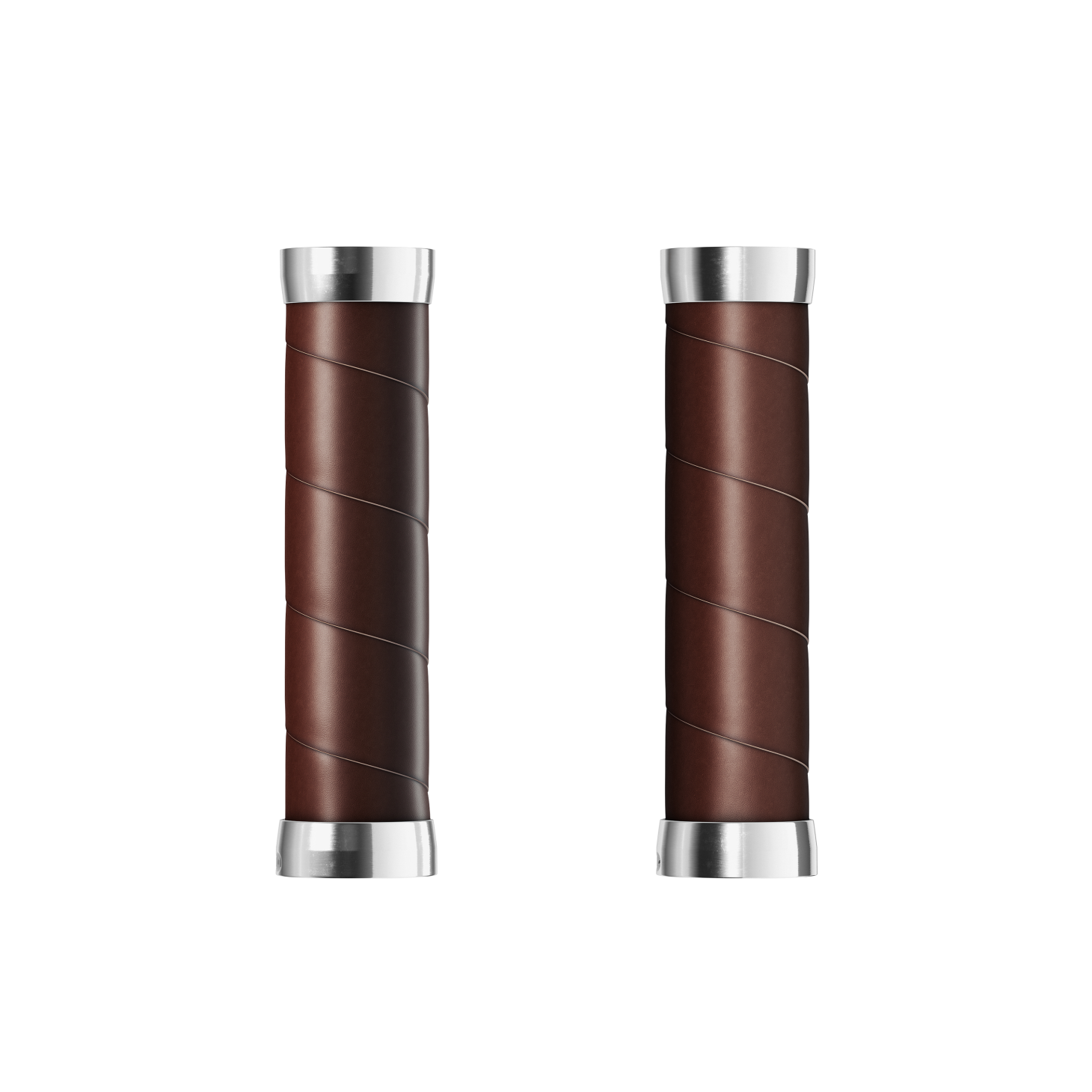 Die Brooks Slender Leather Grips bestehen aus naturbelassenem Leder, das pflanzlich gegerbt wird. Sie sind so aufgebaut, dass der Fahrer einzelne Teile des Griffs selbst austauschen kann. Das Design umfasst einen Aluminium-Kern, um den das Lederband gewickelt wird. Das Lenkerband wird von Aluminium- und Metallkappen in Position gehalten und ist austauschbar.