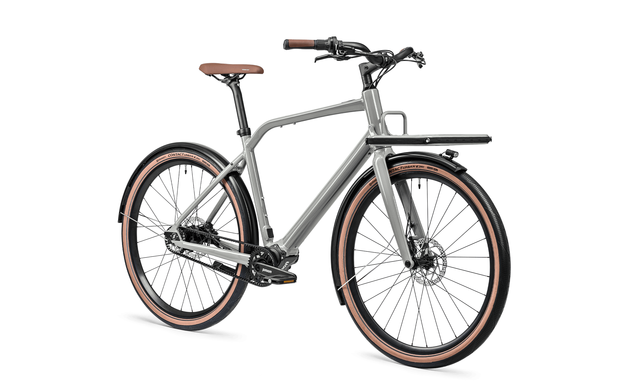 Praxistauglichkeit und Design im Einklang. Die angepasste Schindelhauer-Rahmengeometrie mit längerem Steuerrohr und kürzerem Vorbau sorgt bei Emil für eine bequeme Sitzposition. Selbst Kopfsteinwege werden mit den großvolumigen Reifen zur neuen Lieblingsabkürzung. Größere Lasten können sicher mit dem rahmenfesten Frontgepäckträger und cleverem Spanngurtsystem transportiert werden.