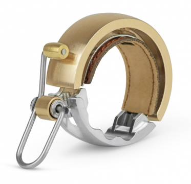 Die beliebte ringförmige Fahrradklingel von Knog gibt es nun auch in der Edel-Variante Oi Luxe. Optisch macht dieses Modell einiges her. Im Bereich der Lenkerklemmung beeindruckt die Klingel mit Lederapplikationen und überzeugt mit einem Klöppel im eleganten Messing-Finish.
