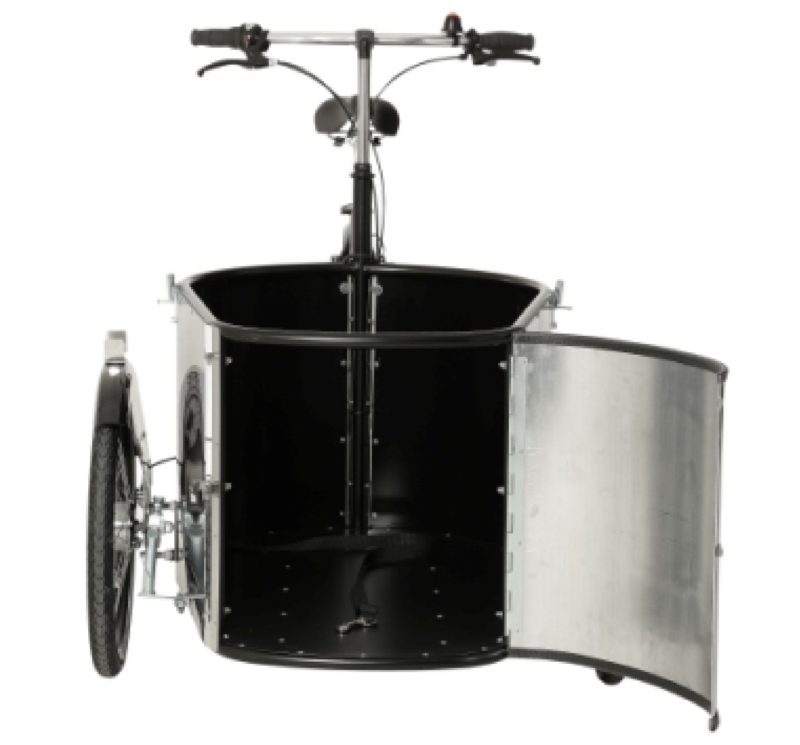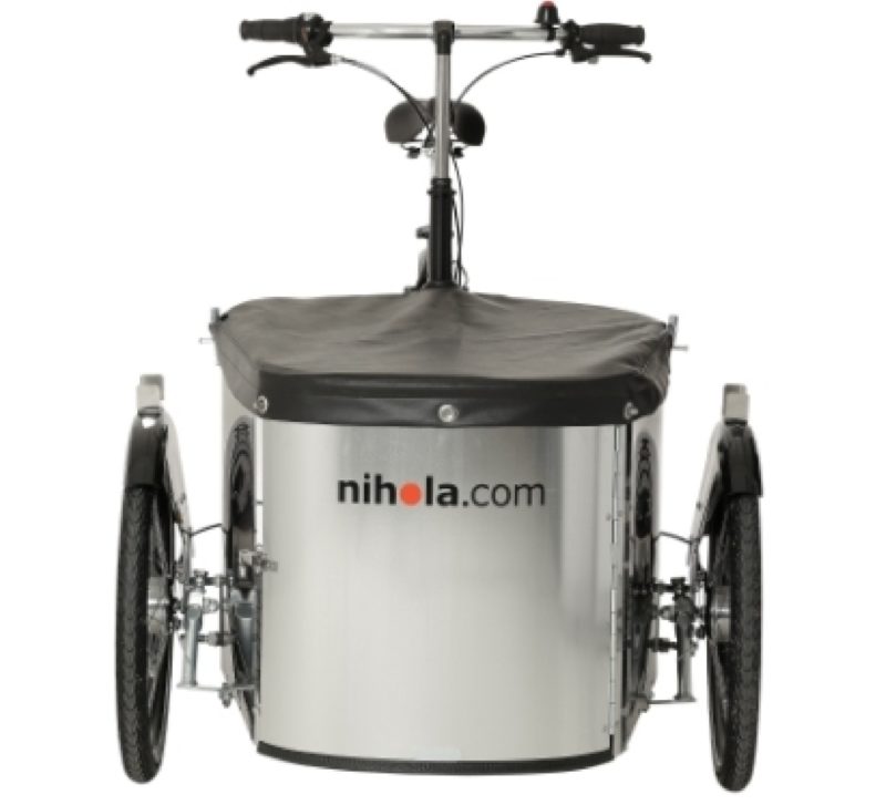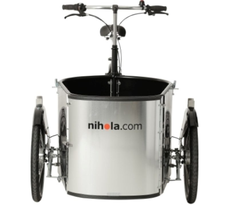 Das Transportvelo nihola Dog wurde speziell zum Transport von Hunden entwickelt. Die Aluminiumvordertür kann geöffnet werden, so dass der Hund selbstständig in den Transportkasten ein- und aussteigen kann.