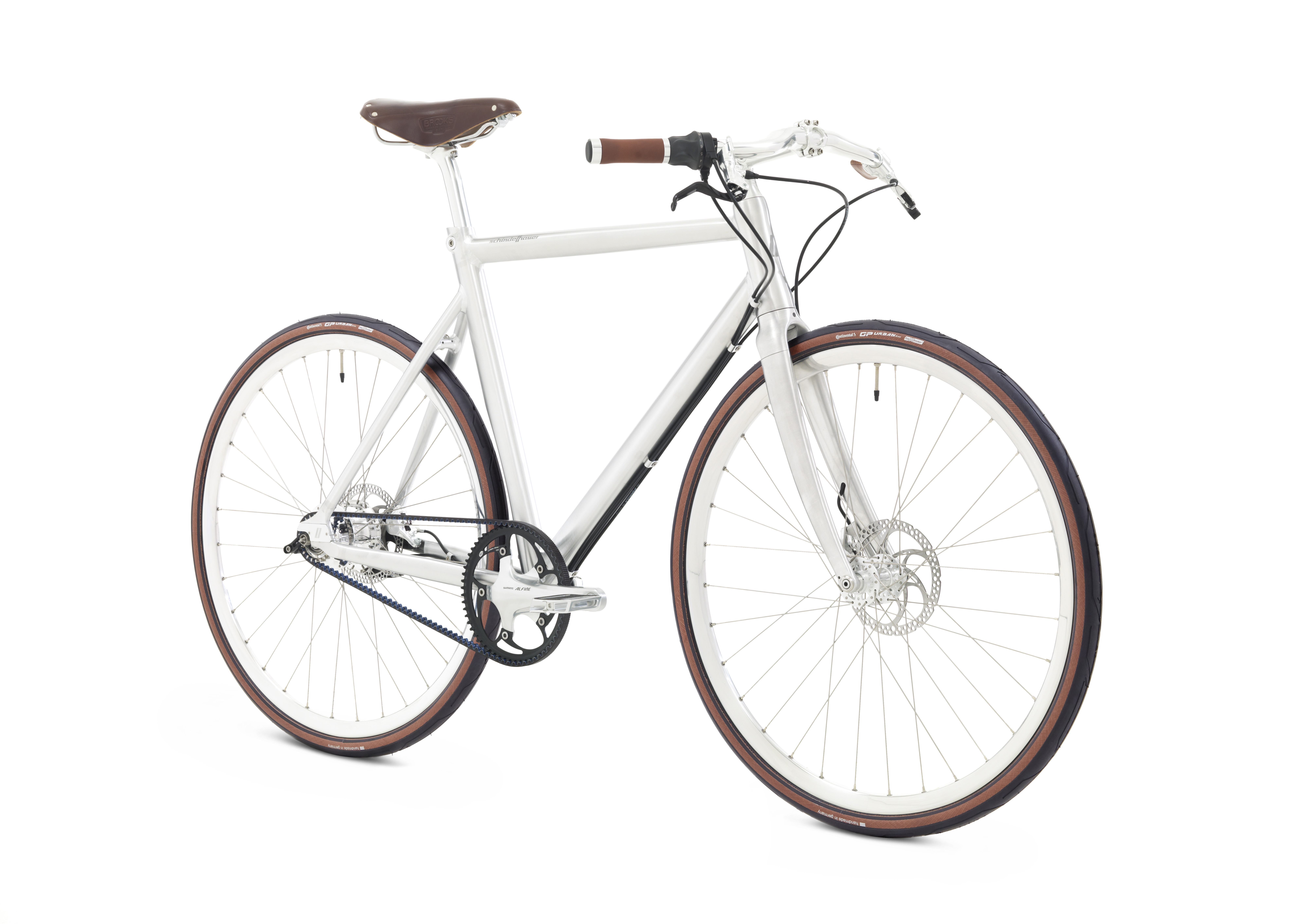 Aluminium (AL6061-T6), Aero-Shape-Rohrsatz, 3-fach konifiziert, geschmiedetes Ausfallende mit Schlittenspannsystem und Schindelhauer - Belt Port, integrierte Sattelklemme, interne Zugverlegung, geglättete Schweißnähte |